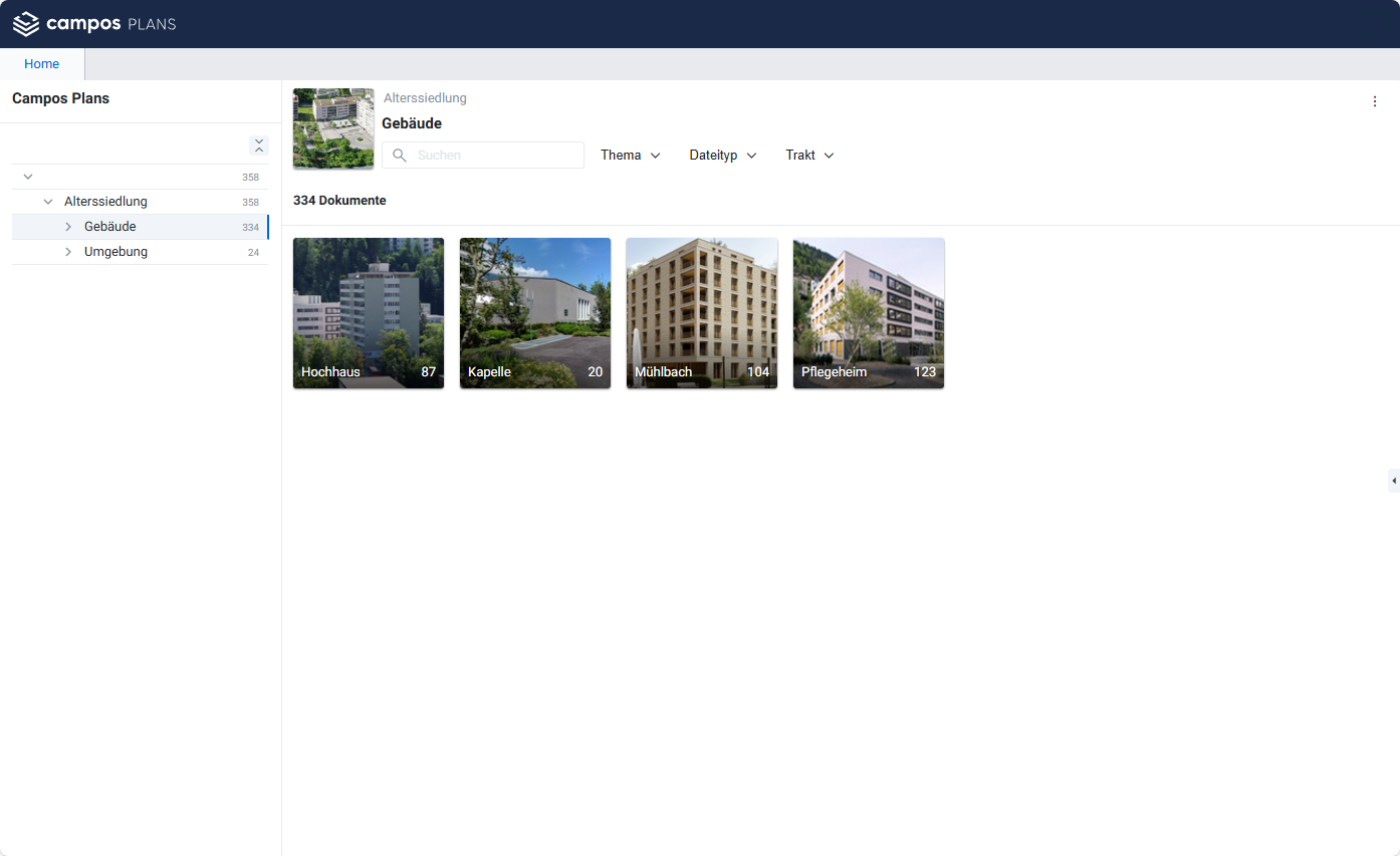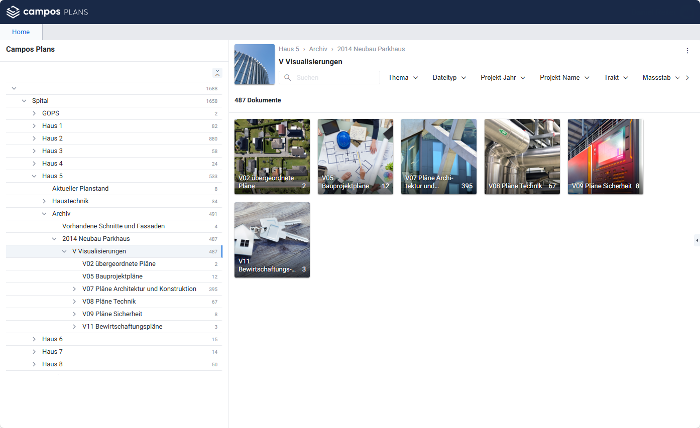 Bei ihrer Recherche stösst Elena auf Campos Plans, ein Produkt der ICFM AG, das die Ablage von Plandaten der Liegenschaften gemäss den Vorgaben des KBOB ermöglicht. Dadurch wären alle Daten in einem einheitlichen System, klar strukturiert und konsistent benannt, verfügbar.